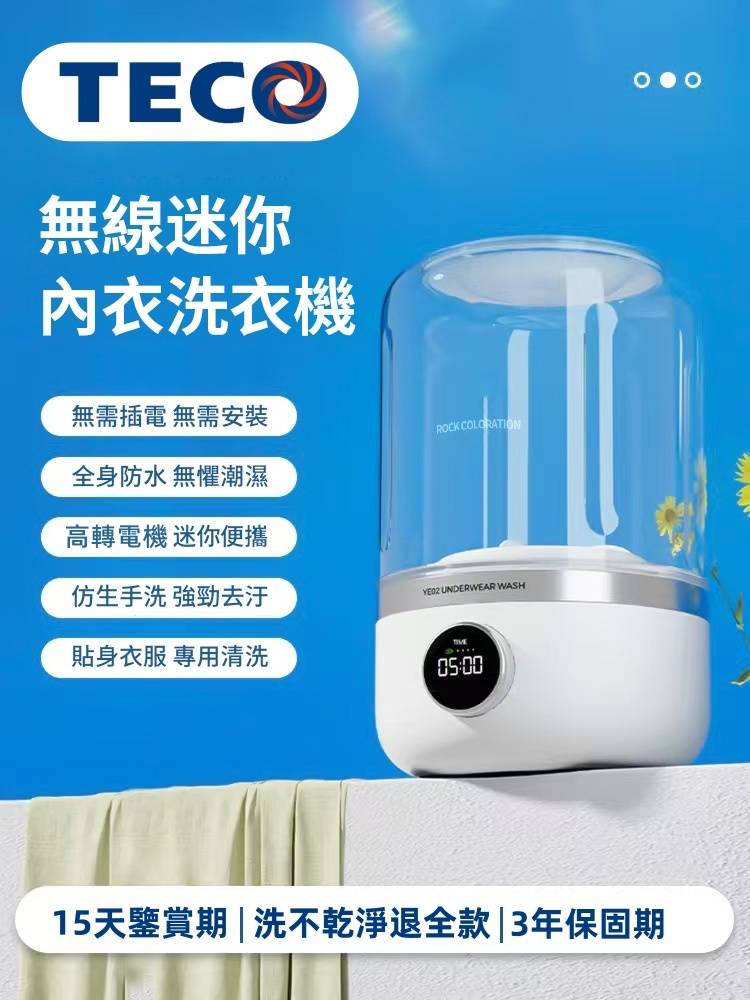 15分鐘前玉如阿姨獨家推出TECO迷你洗衣機,一鍵啟動解放雙手含銀離子持久抑菌,小巧機身功能齊全整機防水防潮防濕 - 內衣內褲分開洗 限時特惠 二入組NT$1990